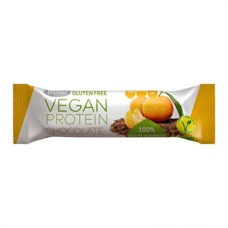 zmes rastlinných bielkovín 21% (sójový bielkovinový izolát, ryžová bielkovina, hrachový bielkovinový izolát), zahusťovadlo: polydextróza (vláknina), tmavá kakaová poleva 18% (cukor, úplne hydrogenované rastlinné tuky (kokosový, slnečnicový), kakaový prášok 16%, emulgátor: slnečnicový lecitín, aróma), sójové vločky, kandizovaná pomarančová kôra 6% (pomarančová kôra, cukor, glukózovo – fruktózový sirup, regulátor kyslosti: kyselina citrónová, konzervačná látka: sorban draselný,arómy),zvlhčovadlo:glycerol, čokoláda 5%(kakaová hmota, cukor, kakaové maslo, emulgátor: slnečnicový lecitín, aróma), kokosový tuk, sójový bielkovinový extrudát ( sójový bielkovinový izolát) kakaový prášok, minerálna látka: uhličitan vápenatý, inulín (vláknina), emulgátor: slnečnicový lecitín, soľ , L-karnitín L-tartrát, arómy, vitamínový premix (C, niacín, E, kyselina pantotenová, B6, B2, B1, kyselina listová, biotín, B12), L- karnitín 160 mg / 100 g.