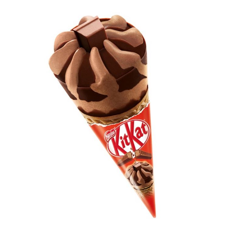 Mrazený krém s rastlinným tukom kakaový s omáčkou s čokoládovou príchuťou (3%) a oblátkou v mliečnej čokoláde (13%, z toho 8,9% mliečnej čokolády), v oblátkovom kornútku (13%).