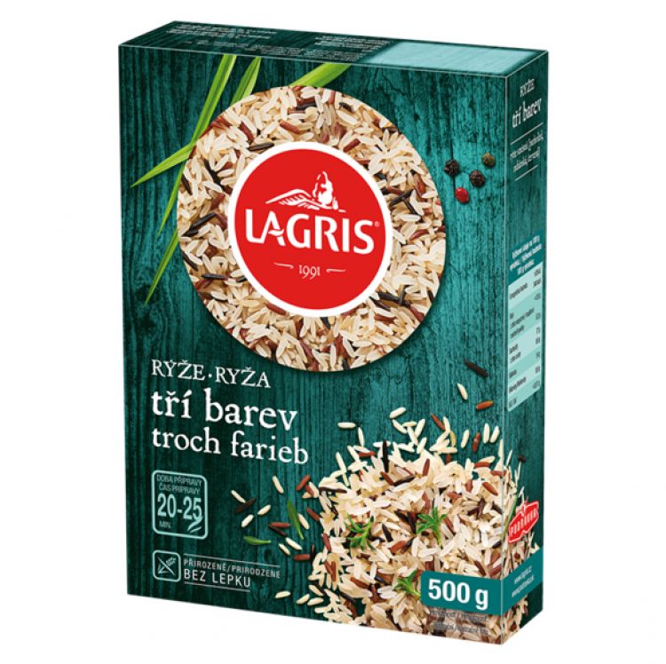 Ryža dlhozrnná lúpaná parboiled (Oryza sativa L.), ryža dlhozrnná červená (Oryza sativa L.), ryža dlhozrnná pololúpaná indiánska (Zizania aquatica) v rôznom pomere. Trieda kvality I.