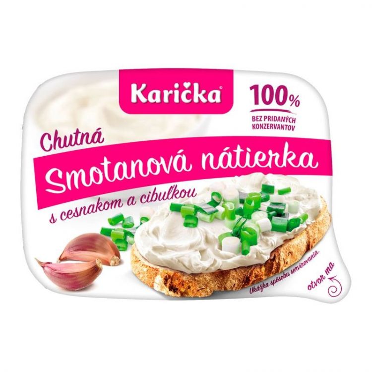 Smotana (91%), Sušené mlieko, Sušený cesnak 1,1%, Sušená jarná cibuľka 1%, Sušená srvátka, Modifikovaný zemiakový škrob, Prírodná cesnaková aróma, Jedlá soľ, Mliekarenské kultúry