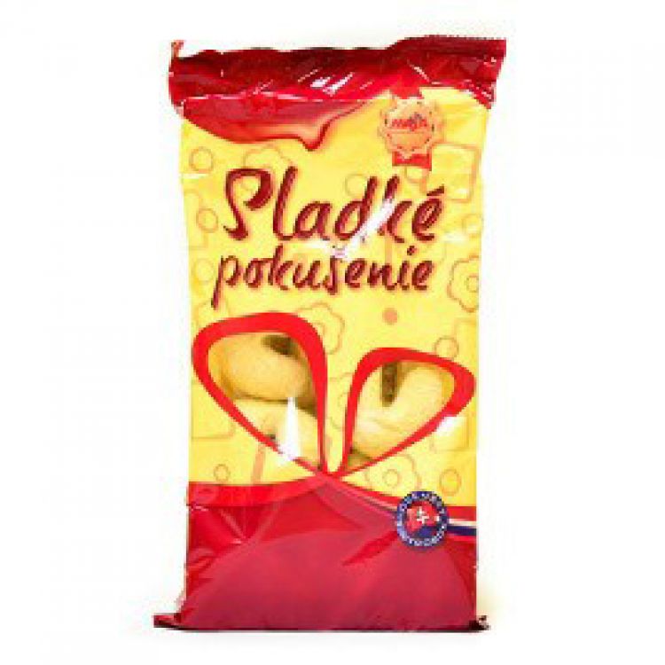 Trvanlivé pečivo Zloženie: pšeničná múka, stolový margarín [rastlinné tuky (palmové), rastlinný olej (repkový),pitná voda, jedlá soľ (0,25%), emulgátory: mono- a diglycerídy mastných kyselín a slnečnicový lecitín, konzervačná látka: E200,regulátor kyslosti: E330], cukor, vaječná melanž (vaječná melanž 99%,voda, konzervačná látka: E202,regulátor kyslosti: E330), sušená srvátka sladká,pasta s citrónovou príchuťou (tekutý cukor,jablková dreň, lieh,arómatický prípravok citrón /obsahuje aldehydy/,konzervačná látka:E211) emulgátor / sójový lecitín/,aróma: ethylvanilín, kypiaca látka:E450i,E500ii.