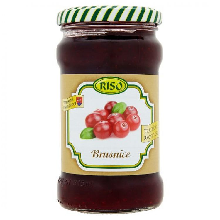 Brusnice (60%), Cukor (40 %), Želírujúca látka: pektín, Regulátor kyslosti: kyselina citrónová