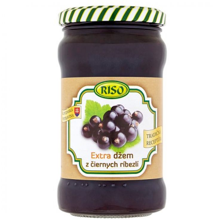 Cukor (58 %), Čierne ríbezle (41 %), Regulátor kyslosti: kyselina citrónová, Želírujúca látka: pektín, Pripravený z 57 g ovocia na 100 g, Celkové množstvo cukru min. 60 g na 100 g