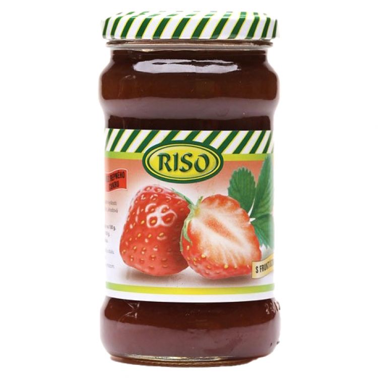 jahody(50,5%), fruktóza, regulátor kyslosti: kyselina citrónová, želírujúca látka: pektín