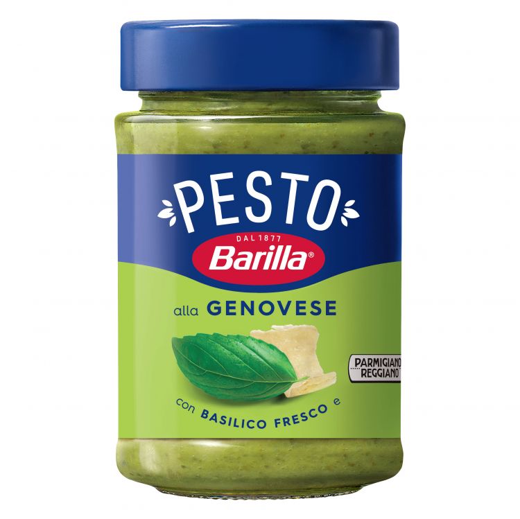 Slnečnicový olej (44,5%), Bazalka (30%), kešu orechy, Syr Grana Padano PDO 4,5% (mlieko, lyzozým z vajec), Sušená mliečna srvátka, Jedlá soľ, Syr Pecorino Romano PDO 1,2% ( mlieko), Cukor, Extra panenský olivový olej, Bazalkový extrakt, Prírodné aróma (mlieko), Cesnak, Sušené cmar, Regulátor kyslosti kyselina mliečna