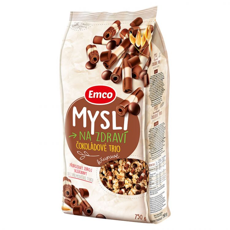 Ovsené vločky 49 %, Cukor, Repkový olej, Horká čokoláda 4,5 % (cukor, kakaová hmota, kakaové maslo, dextróza, emulgátor: sójový lecitín, vanilkový extrakt, obsah kakaových súčastí min. 45 %), Ovocný extrakt (karob, hrozno, jablko), Ryžové lupienky (ryža 93 %, trstinový cukor, jedlá soľ), Ryžová múka, Kúsky z horkej, mliečnej a bielej čokolády 4 % (cukor, kakaová hmota, kakaové maslo, plnotučné sušené mlieko, mliečny tuk, sušená srvátka, emulgátor: lecitín, kakaový prášok so zníženým obsahom tuku), Kukurično-pšeničný extrudát (kukurica, pšenica, jedlá soľ), Kokos, Pšeničný škrob, Aróma, Antioxidant (askorbylpalmitát, prírodný extrakt s vysokým obsahom tokoferolov, emulgátor: lecitín, slnečnicový olej)