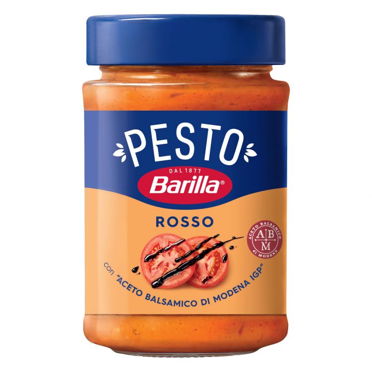 drvené paradajky 34,8%, slnečnicový olej, paradajkový koncentrát 15%, glukózový sirup, Grana Padano * PDO syr (obsahuje mlieko, vaječný lyzozým), kešu orechy, jedlá soľ, bazalka 2,2%, Balsamico ocot z Modeny 2 4, 5% (mlieko, lyzozým z vajec), sušená srvátka (obsahuje mlieko), Pecorino Romano * PDO syr (obsahuje ovčie mlieko), cukor, ryžový škrob, cesnak, regulátor kyslosti: kyselina mliečna, aróma (obsahuje mlieko). * PDO = chránené označenie pôvodu.
