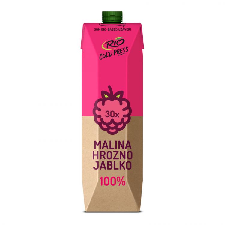 Jablková šťava lisovaná za studena 39%, Šťava z červeného hrozna lisovaná za studena 32,7%, Šťava z bieleho hrozna lisovaná za studena 10%, Jablkové pyré, Malinové pyré 6,6%, Hruškové pyré 2,8%, Citrónová šťava lisovaná za studena