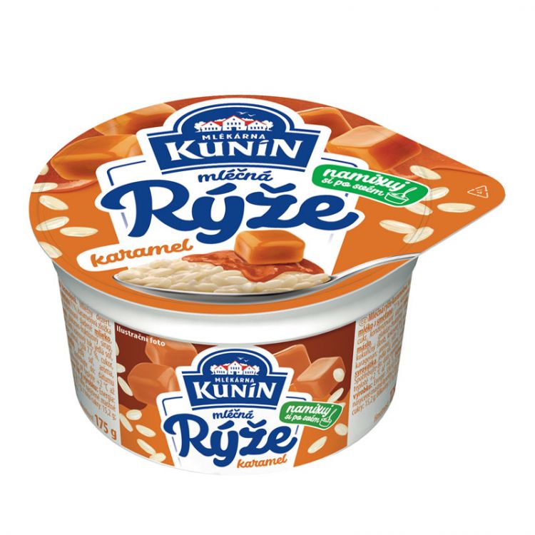 MLIEKO a SMOTANA 71 %, karamelová zložka 17 % (voda, cukor, kondenzované sladené MLIEKO, glukózový sirup,MASLO, glukózo-fruktózový sirup, zahusťovadlá: modifikovaný kukuričný škrob, karagénan; kokosový tuk, jedlá soľ, aróma), ryža 7,7 %, cukor, glukóza, sušená SRVÁTKA, jedlá soľ, aróma, zahusťovadlo: karagénan