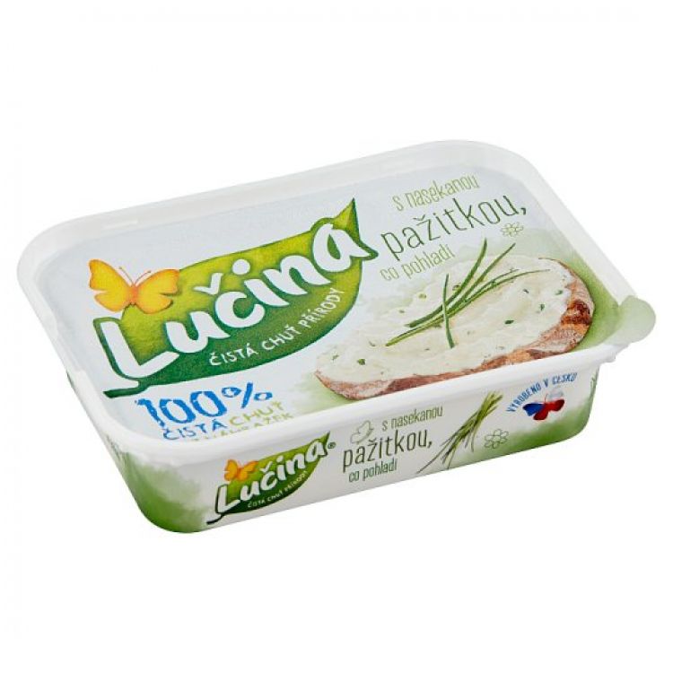 Tvaroh 89 %, Ochucujúca zložka 10 % (sušená pažítka 4,5 %, aróma), Soľ