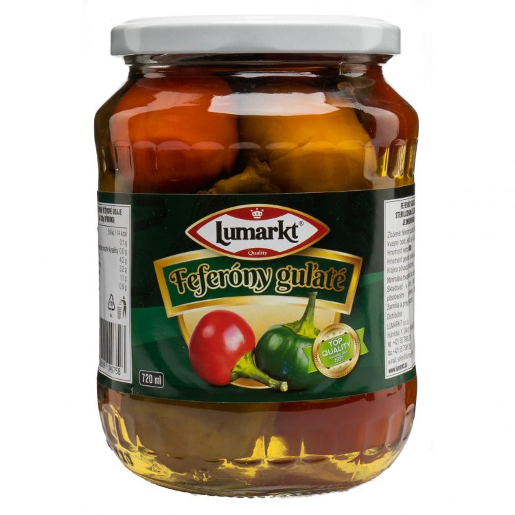 feferóny guľaté, pitná voda, kvasný ocot, jedlá soľ, cukor