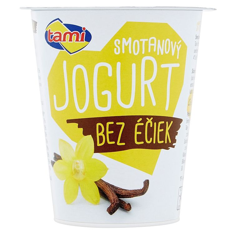 Smotana (10% hm. tuku), Ochucujúca zložka 15% (cukor, voda, kukuričný škrob, karotkový koncentrát, vanilkový extrakt 0,3%, vanilková aróma, extrakt z kurkumy), Jogurtová kultúra, Tuk v hmotnostných %: najmenej 8,5