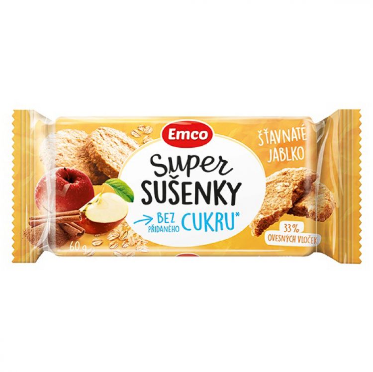 Ovsené vločky 33%, pšeničná múka, repkový olej, koncentrovaná jablčná šťava 11%, vláknina z koreňa čakanky 7%, strúhaný kokos 4%, kúsky sušených jabĺk 3%, mletá škorica 0,8%, emulgátor: repkový lecitín, antioxidanty (skorbylpalmitát , prírodný extrakt s vysokým obsahom tokoferolov), kypriace látky (hydrogénuhličitan amónny, hydrogénuhličitan sodný).