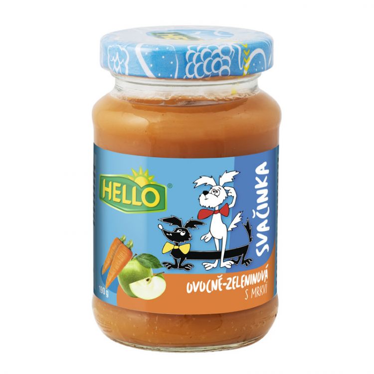 Ovocie a zelenina 85 % hm. (jablčná dreň 65% hm., karotková dreň 20% hm.) voda, cukor, modifikovaný škrob, antioxidant: kyselina askorbová, vitamín C. Vitamín C min. 10 mg (40%*/12,5%**), *referenční hodnota vitamínu pre kojencov a malé deti, **referenčná hodnota príjmu pre dospelých.