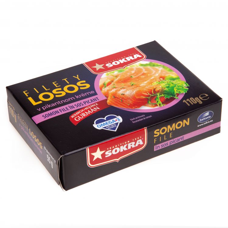 Lahodný losos značky SOKRA v paradajkovom kréme. Stáči otvoriť a užiť si jeho chuť, ktorá je navyše zvýraznená chuťou vynikajúcej paradajkovej omáčky.