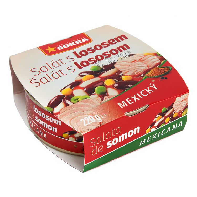losos (Salmo salar) – 20 %, zeleninová zmes – 41 % (biela a červená fazuľa, mrkva, zelený hrášok, kukuricca, cibuľa, zelér), pitná voda, paradajková pasta – 5,3%, cukor, jedlá soľ, repkový olej, zahusťovadlá: modifikovaný kukuričný škrob, stabilizátory: karubín, guarová guma a karboxymethylcelulóza, zmes korenia (chilli paprika, čierne korenie), regulátor kyslosti: kyselina octová.