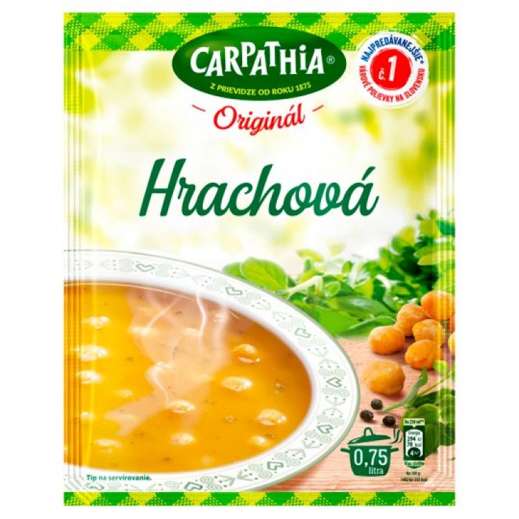 Sušený žltý hrach 55,9 % (múka a predvarený celý hrach), Pšeničná múka, Jedlá soľ, Sušená mletá zelenina (cibuľa, cesnak), Tuk z údenej bravčovej slaniny 4,6 %, Zvýrazňovače chuti (glutaman sodný, 5´ - ribonukleotid disodný), Koreniny (sladká paprika, majorán 0,5 %, čierne korenie), Pšeničný glutén, Arómy, Dymová aróma, Dextróza (jednoduchý cukor), Palmový olej, Cukor, Antioxidant (extrakty z rozmarínu), Minerálna látka (jodičnan draselný), % - vztiahnuté na obsah zložky v celom výrobku
