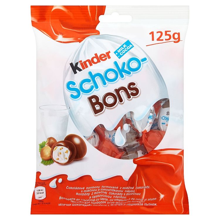Mliečna čokoláda 50% (cukor, sušené plnotučné mlieko, kakaové maslo, kakaová hmota, emulgátor: lecitíny (sójové), aróma), Cukor, Sušené odtučnené mlieko, Palmový olej, Lieskovce (5,8 %), Maslový tuk, Čokoláda (cukor, kakaová hmota, kakaové maslo, emulgátor: lecitíny (sójové), aróma), Leštiace látky: (arabská guma, šelak), Glukózový sirup, Emulgátor: lecitíny (sójové), Arómy, Obsah mliečnej sušiny: najmenej 28 % z celkovej hmotnosti, Obsah kakaových zložiek: najmenej 16 % z celkovej hmotnosti