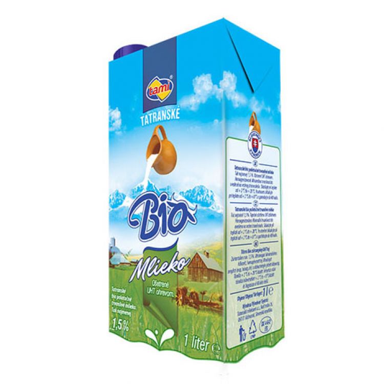 Konzumné Bio mlieko polotučné, ošetrené UHT ohrevom, homogenizované, tuk najmenej 1,5%