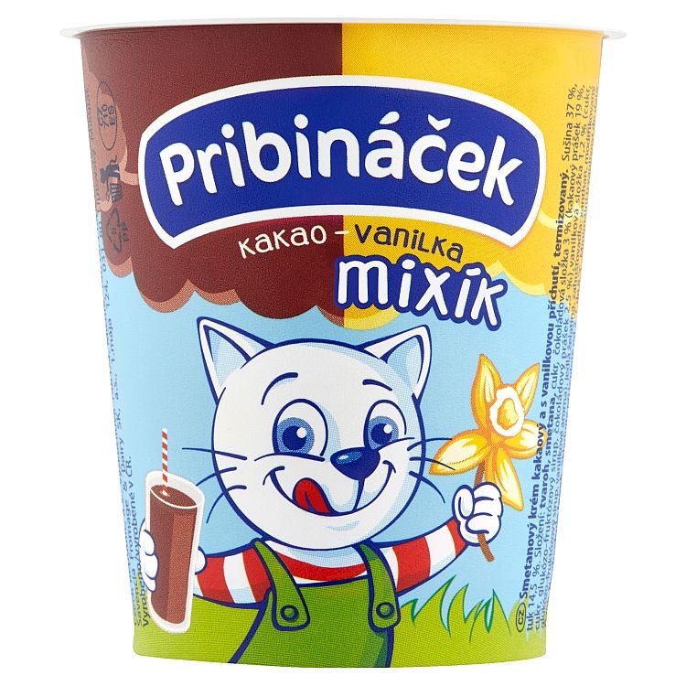 Tvaroh, Smotana, Cukor, Čokoládová zložka 3 % (kakaový prášok 19 %, cukor, čokoládový prášok 2,5 %), Vanilková zložka 1,3 % (cukor, prírodná aróma a vanilkový extrakt), Jedlá želatína, Zahusťovadlá: xantánová guma, modifikovaný škrob, Sušina 37 %, Tuk 14,5 %