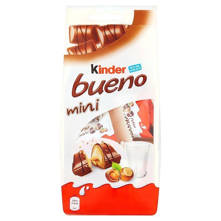 Mliečna čokoláda 31 % (cukor, kakaové maslo, kakaová hmota, sušené odtučnené mlieko (11 %), maslový tuk, emulgátor: lecitíny (sójové); vanilín), Cukor, Palmový olej, Pšeničná múka, Lieskovce (10,8 %), Sušené odtučnené mlieko (8,5 %), Sušené plnotučné mlieko (5,5 %), Čokoláda (cukor, kakaová hmota, kakaové maslo, emulgátor: lecitíny (sójové); vanilín), Kakaový prášok so zníženým množstvom tuku, Emulgátor: lecitíny (sójové), Kypriace látky (E 500ii, E 503ii), Jedlá soľ, Vanilín, Obsah mliečnej sušiny: najmenej 19,4 % z celkovej hmotnosti