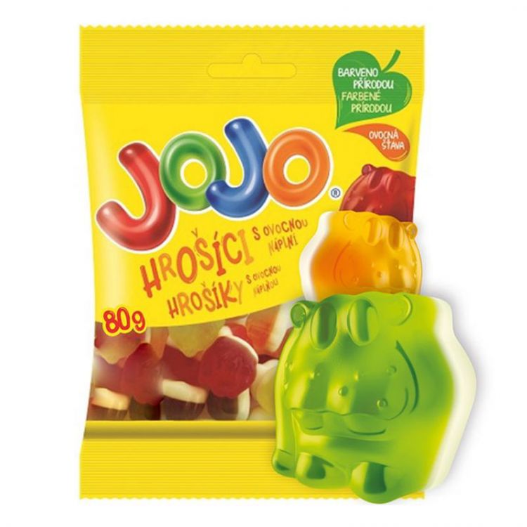 Glukózový sirup, cukor, pitná voda, želatína, glukózo-fruktózový sirup, kyseliny (kyselina vínna, jablčná, citrónová), zvlhčovadlo (glycerol), ovocné šťavy z koncentrátov (pomaranč 1,2 %, ananás 0,2 %, marakuja 0,1 %), palmový olej** 0,1 %, povlaková látka (karnaubský vosk), arómy (ananás, broskyňa, jablko, slivka), regulátor kyslosti (askorban sodný), rastlinné koncentráty a extrakty (mrkva, požlt farbiarsky, ibištek, jablko, čerešňa, reďkovka, sladké zemiaky, kurkuma), koncentrát spiruliny, stabilizátor (karagénan), koncentrát mangového pyré