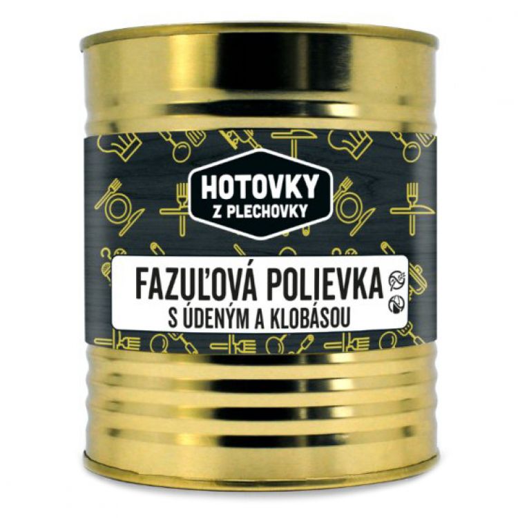 Hotovky z plechovky Fazuľová polievka s údeným a klobásou, 800ml (2-3 porcie)