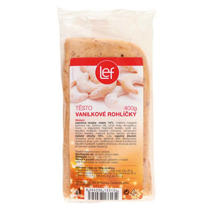 PŠENIČNÁ Múka, MASLO 14%, rastlinný margarín (palmový tuk, repkový olej, pitná voda, emulgátory: mono- a diglyceridy mastných kyselin, jedlá sol, regulátor kyselosti: kyselina citronová, konzervant: sorban draselný, maslová aróma, barvivo: annatto), VLAŠSKÉ ORECHY 10%, cukor, VAJEČNÝ ŽĹTOK, citropasta (pitná voda, jablčná dreň sterilizovaná, glukózový sirup, cukor, modifikovaný škrob zemiakový, regulátor kyselosti: kyselina citronová, citronové aroma, konzervant: sorban draselný).