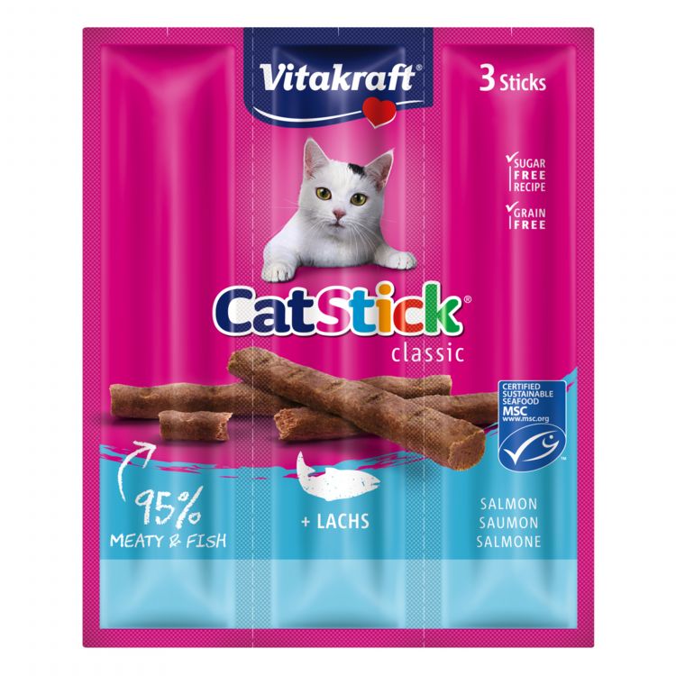 Doplnkové krmivo pre mačky. Obľúbené tyčinky s extra vysokým obsahom mäsa, vynikajúcou arómou s neodolateľnou chuťou. Receptúra bez cukru. Neobsahuje farbivá ani konzervanty.