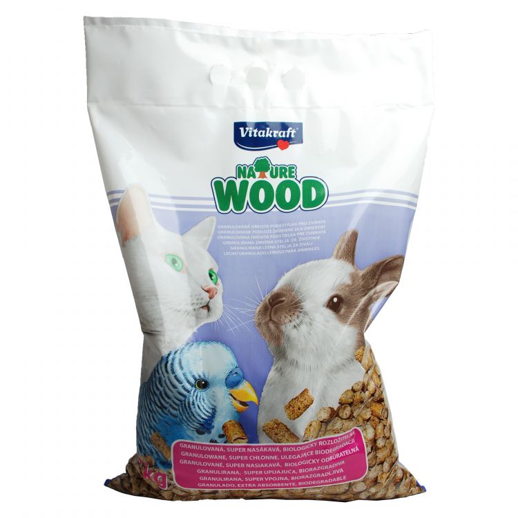 Podstielka v podobe drevených peletiek vhodná do hlodavčích aj vtáčích klietok a mačacích toaliet.