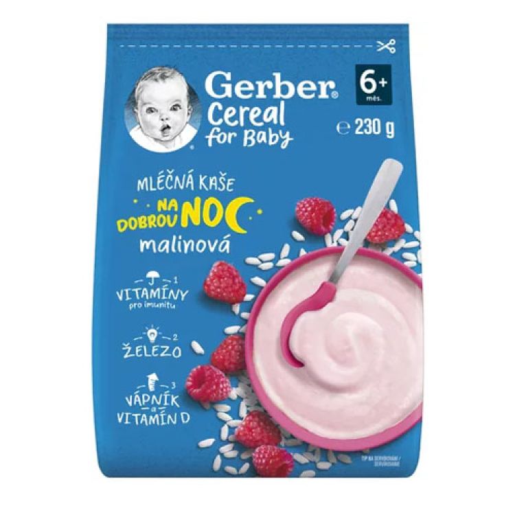 GERBER Cereal mliečna kaša malinová je kombináciou vysokokvalitnej ryžovej múky, jemnej chuti banánov a vitamínov, ktoré uspokoja potreby dieťatka aj jeho maškrtný jazýček. Neobsahuje glutén, preto je vhodným začiatkom pre každé malé bruško v období prvých príkrmov. Kaša je vhodná pre dojčatá od ukončeného 4. mesiaca.