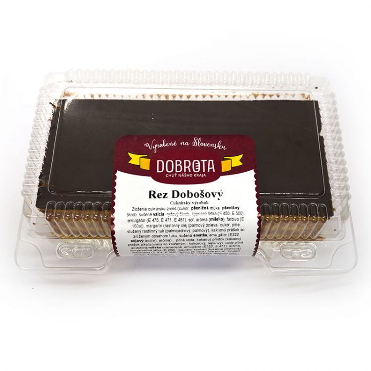 cesto: zmes (cukor, pšeničná múka, pšeničný škrob, sušené slepačie vajcia, ryžový škrob, kypriace látky: E 450, E 500; emulgátory: E 475, E 471, E 481; soľ, aróma: s mliečnou zložkou, farbivo: E 160a), voda náplň: margarín (palmový olej, kokosový olej, repkový olej, voda, acidofilné odstredené mlieko, emulgátory: slnečnicový lecitín, E471; aróma, konzervačná látka: E202, regulátor kyslosti: E330, antioxidanty: E304, E306; farbivo: E160a, vitamín: A), fondant (cukor, glukózový sirup, voda), kakaový prášok (kakaový prášok so zníženým obsahom tuku, regulátor kyslosti: E501i.) poleva: cukrárska poleva tmavá (cukor, úplne stužený tuk palmojadrový a palmový, kakaový prášok so zníženým obsahom tuku, sušená srvátka, emulgátor: sójový lecitín, aróma), repkový olej