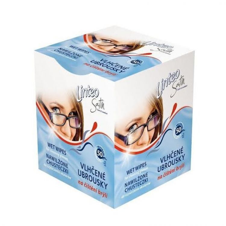 vlhčené obrúsky Linteo na čistenie okuliarov. Bez šmúh, rýchloschnúce, antistatické. Praktické balenie do kabelky – obrúsky balené samostatne. Vhodné taktiež na šošovky kamier a fotoaparátov