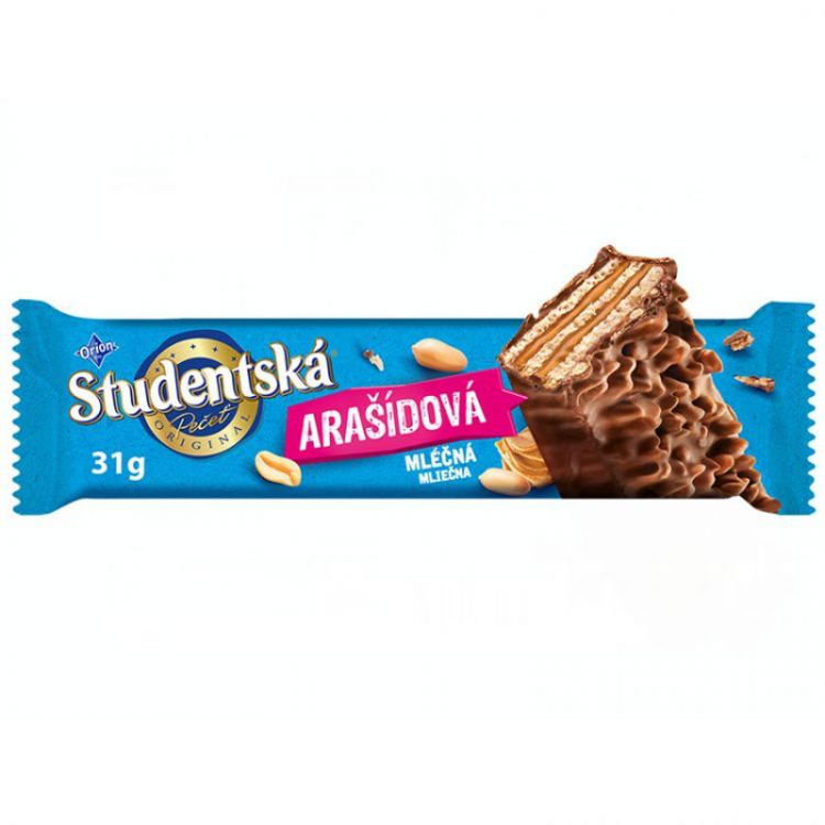 Mliečna čokoláda [cukor, kakaové maslo(1), kakaová hmota(1), sušené odtučnené MLIEKO, sušená SRVÁTKA, MLIEČNY tuk, rastlinné oleje (palmový, olej zo semien maslovníka), emulgátor (lecitíny)], PŠENIČNÁ múka, horká čokoláda [cukor, kakaová hmota(1), kakaové maslo(1), rastlinné oleje (palmový, olej zo semien maslovníka), kakaový prášok so zníženým množstvom tuku(1), MLIEČNY tuk, emulgátory (lecitíny, E 476)], cukor, ARAŠIDOVÁ pasta 9,8 %, ARAŠIDY 8 %, palmový olej, sušená SRVÁTKA, sušené odtučnené MLIEKO, kypriace látky (uhličitany amónne, uhličitany sodné), jedlá soľ, PŠENIČNÝ škrob, emulgátory (SÓJOVÝ lecitín, E 476), karamelizovaný cukor, antioxidanty (E304, E307), ORECHOVÁ pasta (MANDLE, LIESKOVÉ a VLAŠSKÉ ORECHY) (1)Rainforest Alliance Certified. Zistite viac na www.ra.org