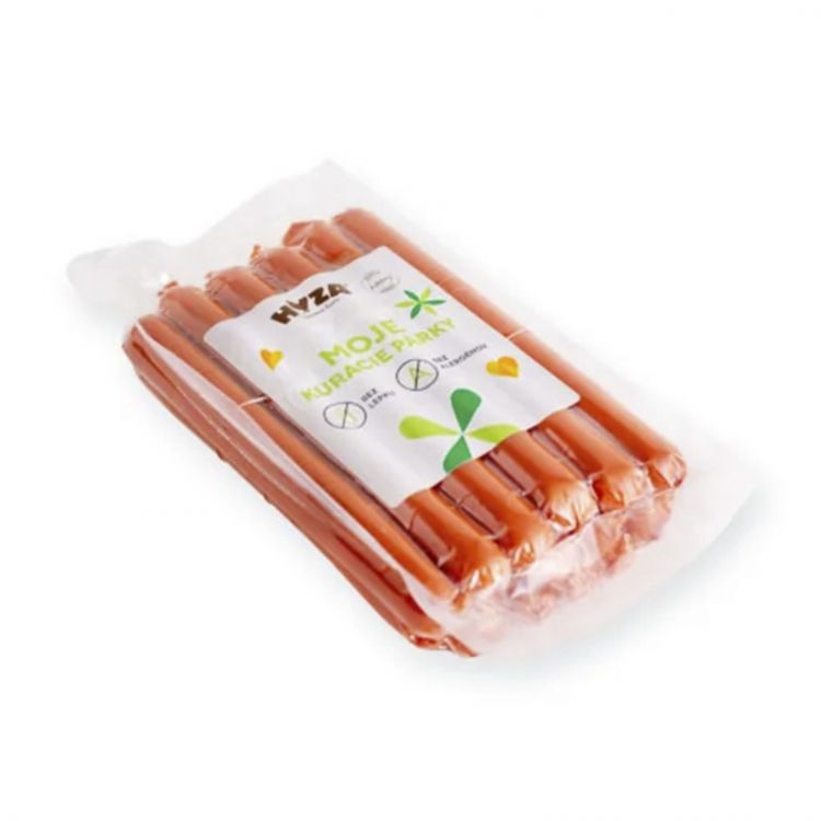 kuracie mechanicky separované mäso 69 %, pitná voda, bravčová slanina (9 %), kuracie prsia (4 %), jedlá soľ, konzervačná látka E250, zemiakový škrob, dextróza, kvasničný extrakt, stabilizátor E450, koreniny, antioxidant E300, extrakty korenín. Obaly (črevá) výrobku nie sú určené na konzumáciu.