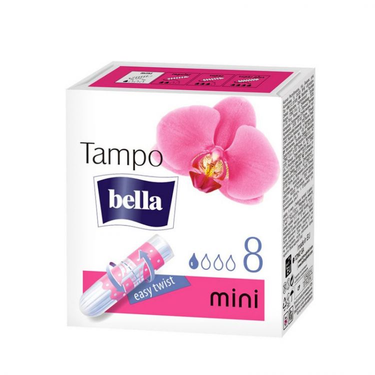 Bella Tampo, veľmi savé tampóny bez aplikátora. Veľkosť mini je vhodná počas dní so slabým krvácaním.