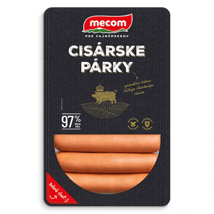 bravčové mäso 97%, pitná voda, bravčová slanina, jedlá soľ, bravčová bielkovina, stabilizátory (E 450, E 451), dextróza, antioxidanty (E 300, E 316), extrakty korenín, aróma, farbivo (E 120), regulátory kyslosti (E 262, E 500), glukózový sirup, konzervačná látka (E 250). Výrobok plnený v hovädzom kolagénovom čreve. Informácia pre alergikov: Bezgluténový výrobok. Návod na prípravu: V hrnci nechajte zovrieť dostatočné množstvo vody. Potom hrniec odstavte z platne a párky zohrievajte v teplej vode cca 5 min. Výživové údaje na 100g výrobku: Energia 1148kJ / 277 kcal, Tuky: 23,4 g, z toho nasýtené mastné kyseliny: 8,5 g, Sacharidy: <0,5 g, z toho cukry:<0,5 g, Bielkoviny: 16,4 g, Soľ: 2,00 g. Spotrebujte do: uvedené na etikete. Skladujte pri teplote 0°C až + 4 °C. Po otvorení spotrebujte do 72 hodín. Vyrobené na Slovensku. Krajina pôvodu základnej zložky (bravčové mäso): EÚ.