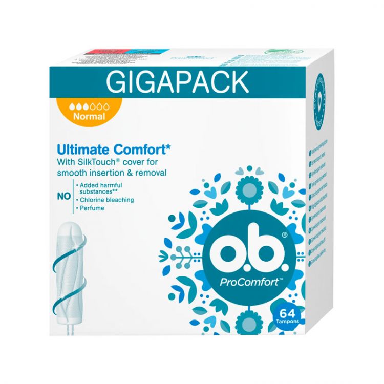 o.b.® ExtraProtect Normal tampóny, pre strednú až silnú menštruáciu, so SilkTouch® krídelkami a DynamicFitTM technológiou, mimoriadna ochrana proti pretečeniu* a úniku tekutiny okolo tampónu v priebehu dňa aj v noci, 16 ks/56 ks