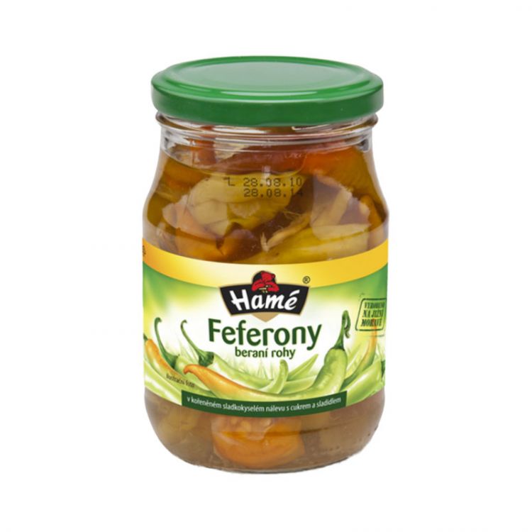 Zloženie: feferóny, voda, ocot, jedlá soľ, cukor, koreniaci výťažok, sladidlo: sacharín.