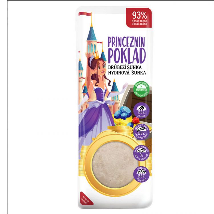 Zloženie: Hydinové prsia 93%, pitná voda, natívny škrob, jedlá sol: dextróza, stabilizátor: trifosforečnany, antioxidant: rastlinný extrakt, prírodná aróma, extrakty korenín, živočíšna bielkovina (hydinová), konzervačná látka: dusitan sodný.