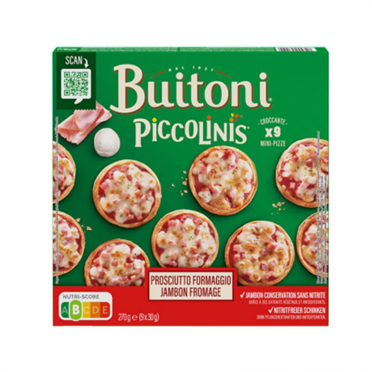 pšeničná múka, krájané rajčiny 19 %, eidamský syr 16 %, pitná voda, varená šunka 8 % (bravčová šunka, jedlá soľ, konzervant: dusitan sodný; dextróza, stabilizátor: kyselina citrónová; extrakty korenín, antioxidant: kyselina askorbová), repkový olej, údená šunka 1,6 % (bravčová šunka, jedlá soľ, koreniny, cukor, konzervačné látky: dusitan sodný, dusičnan draselný), sušené plnotučné mlieko, kvasnice, jedlá soľ, cukor, emulgátor (sójový lecitín), koreniny, dextróza