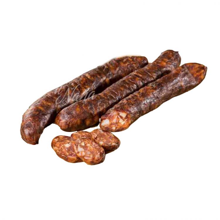 Bravčové mäso 88%, bravčová slanina 9%, cesnak, zmes korenín, morská soľ, paprika štiplavá. Plnené v jedlom bravčovom čreve.