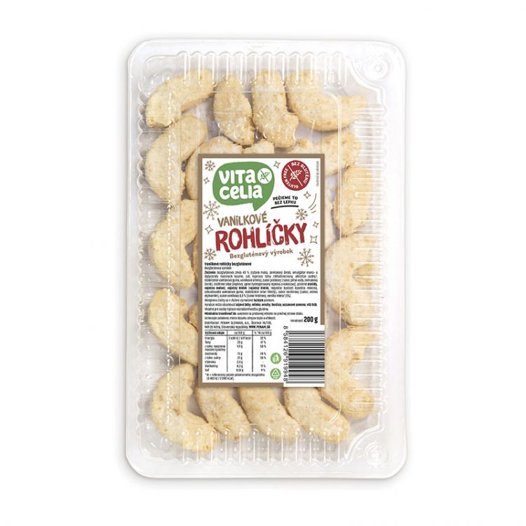 bezgluténová zmes 43 % (ryžová múka, zemiakový škrob, emulgátor mono- a diglyceridy mastných kyselín, soľ, kypriace látky /diforečnany, uhličitany sodné/, stabilizátor xantánová guma, vanilková aróma), cukor práškový (cukor, pitná voda, zemiakový škrob), rastlinné oleje (repkový, úplne hydrogenovaný repkový a kokosový), pražené arašidy, vaječná melanž, vaječný bielok (vaječný bielok, regulátor kyslosti kyselina mliečna, zahusťovadlo xantánová guma, stabilizátor síran hlinitý), cukor vanilínový (cukor, aróma etylvanilín), cukor vanilkový 0,8 % (cukor trstinový, vanilka mletá 1,5 %).