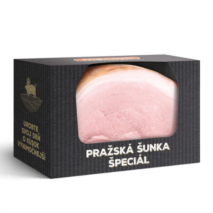 Tepelne opracovaná šunka špeciál, údená, vákuovo balená.