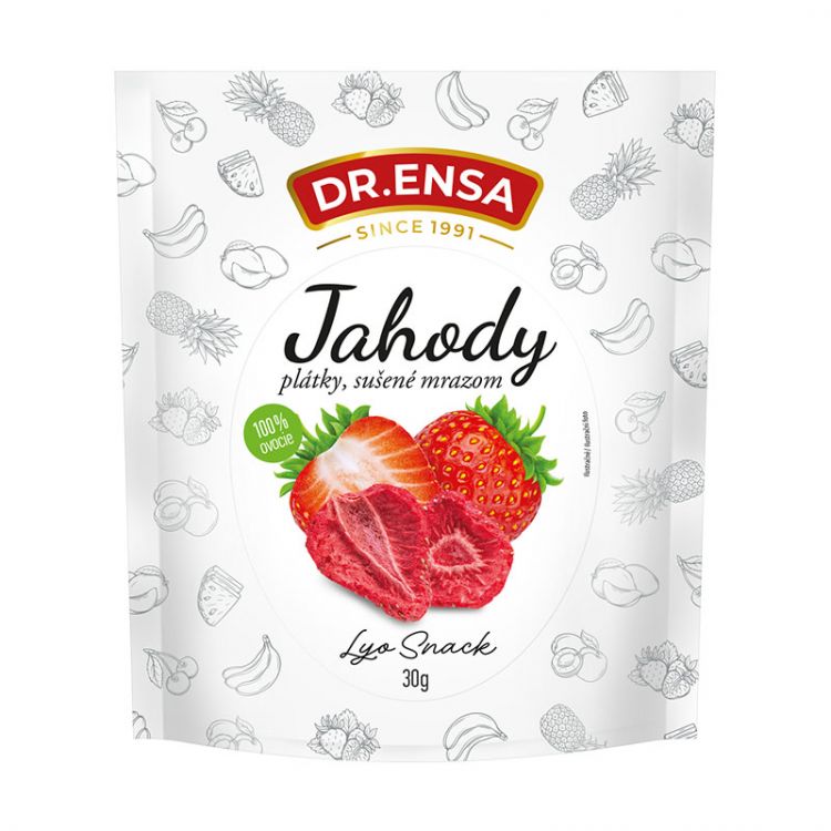 Lyofilizované jahody, krájané. Ovocie sušené.