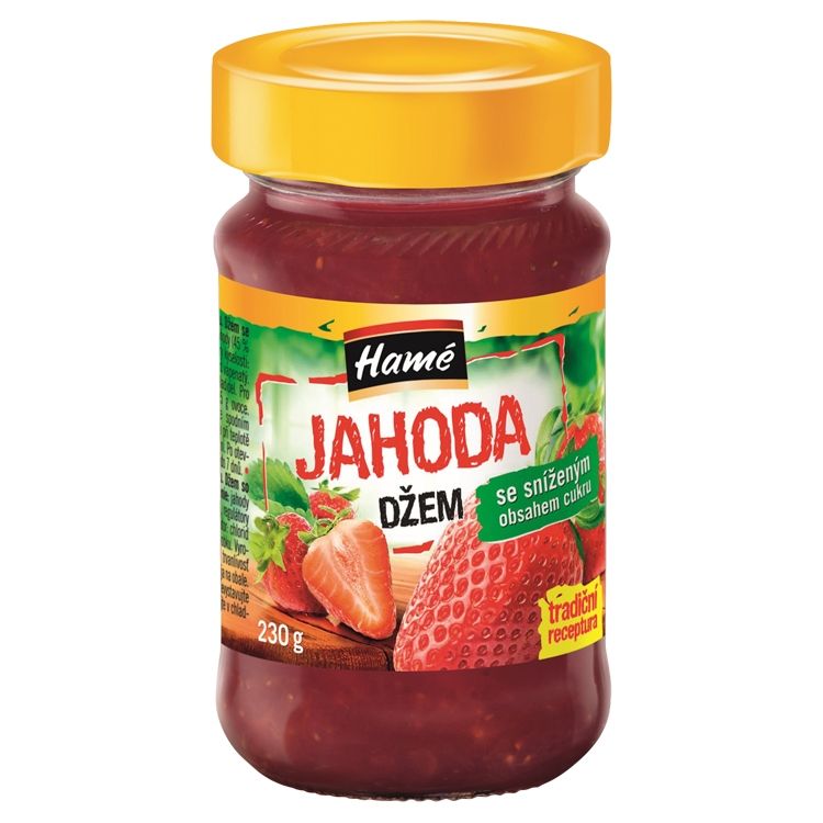 Zloženie: jahody 45 %, cukor, voda, želírujúca látka: pektín, regulátor kyslosti: kyselina citrónová.