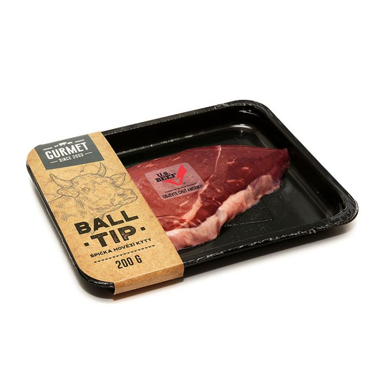Hovädzie výsekové mäso bez kosti. Steakové mäso - špička orecha. Chladené, tácka.