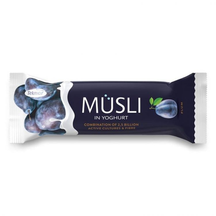 ovsené vločky 26%, poleva s jogurtom 20% (cukor, úplne hydrogenovaný palmový tuk, jogurtový prášok 4%, laktóza, emulgátor: sójový lecitín, kyselina: kyselina citrónová, aróma), glukózový sirup, fruktózový sirup, extrudát 12% (pšeničná múka, kukuričná múka, ryžová múka, cukor, soľ), sušené slivky 13% (obsahuje antioxidant: oxid siričitý), kukuričné lupienky, repkový olej, brusnicová zložka 3% (brusnice 65%, cukor, bazový ovocný koncentrát, slnečnicový olej, kyselina: kyselina citrónová), cukor, maltodextrín, inulín 1,5% (vláknina), jačmenný sladový výťažok, palmový tuk, zvlhčovadlo: sorbitol, regulátor kyslosti: kyselina citrónová, soľ, emulgátor: sójový lecitín, aróma, mliečne kultúry 0,065% (Lactobacillus acidophilus, Lactobacillus plantarum, Bifidobacterium lactis, Streptococcus thermophilus)