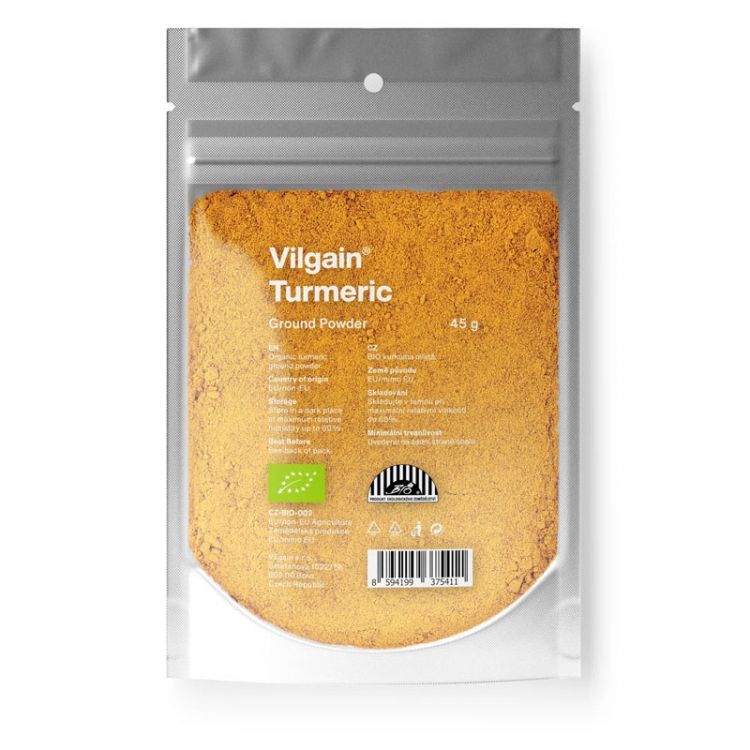 Pikantné korenie s protizápalovými účinkami. Vilgain mletá kurkuma je čisto prírodné korenie z ekologického poľnohospodárstva. Neobsahuje žiadne konzervanty, zvýrazňovače chuti či umelé arómy. Kurkuma je nevyhnutnou súčasťou karí zmesí a pokrmu dodá nielen krásnu farbu, ale aj jemnú zemitú chuť. Skvele sa hodí do ryžových pokrmov a šošovky a výborne chutí aj s kuracím mäsom, s rybou, baklažánom alebo špenátom. Kurkuma je obľúbenou ingredienciou ázijskej kuchyne.