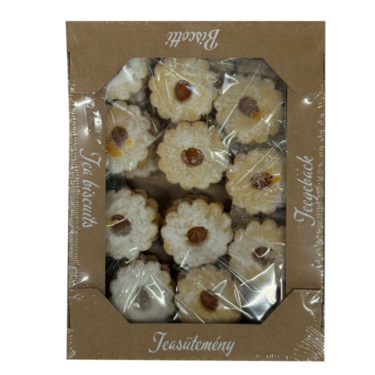 Zloženie: PŠENIČNÁ MÚKA, margarin( rastlinné tuky/palmové /, rastlinný olej /repkový/, pitná voda, emulgátor / mastné kyseliny mono- a diglicerin/, jedlá soľ, konzervačná látka kyselina sorbová, regulátor kyslosti :kyselina citrónová, farbivo: kapsantin , ovocná náplň/ ovocné pyré marhuľové , jablkové pyré , cukor, glukózový sirup, želírovacia látka pektin/ , cukor, kakaový prášok zo zníženým množstvom tuku, odtučnené sušené MLIEKO, vanilkový cukor, cukor aroma, Vaječná melanž, citrónová aróma. Môže obsehovať sóju,sezam, arašídy a iné orechy.
